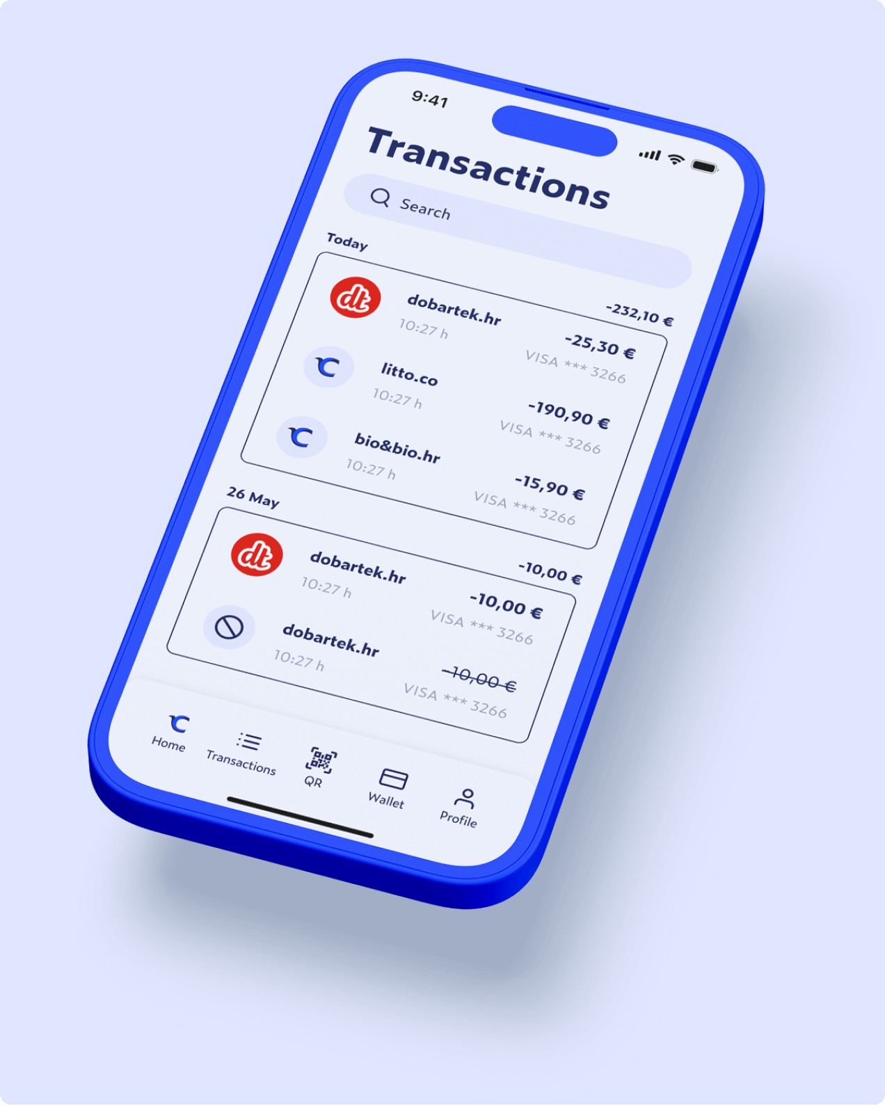 Bilo da plaćaš sa sačuvanim IBAN-ima ili karticama, sve transakcije prati na jednom mestu. Baci pogled na svoju internet potrošnju bilo kad i bilo gde.