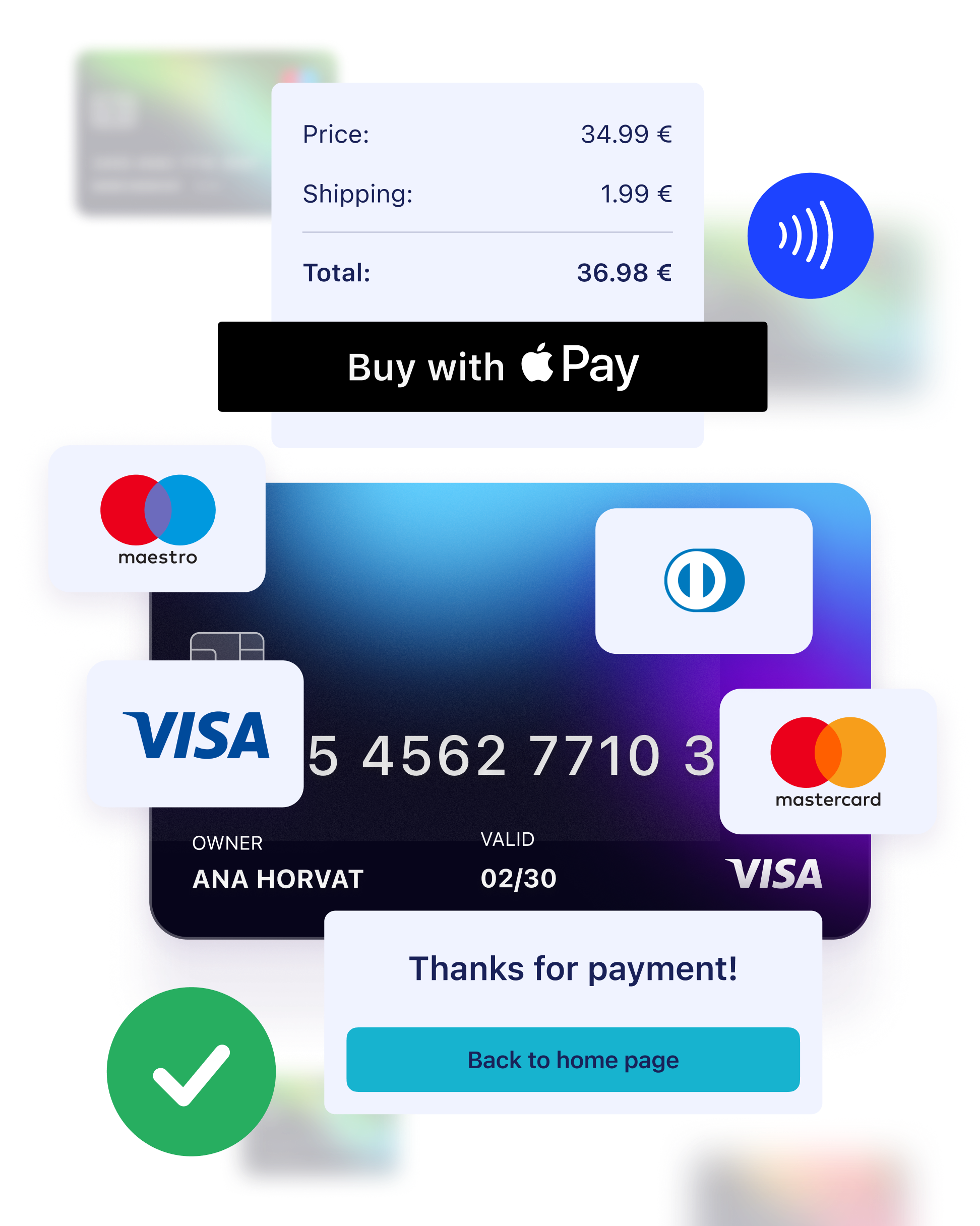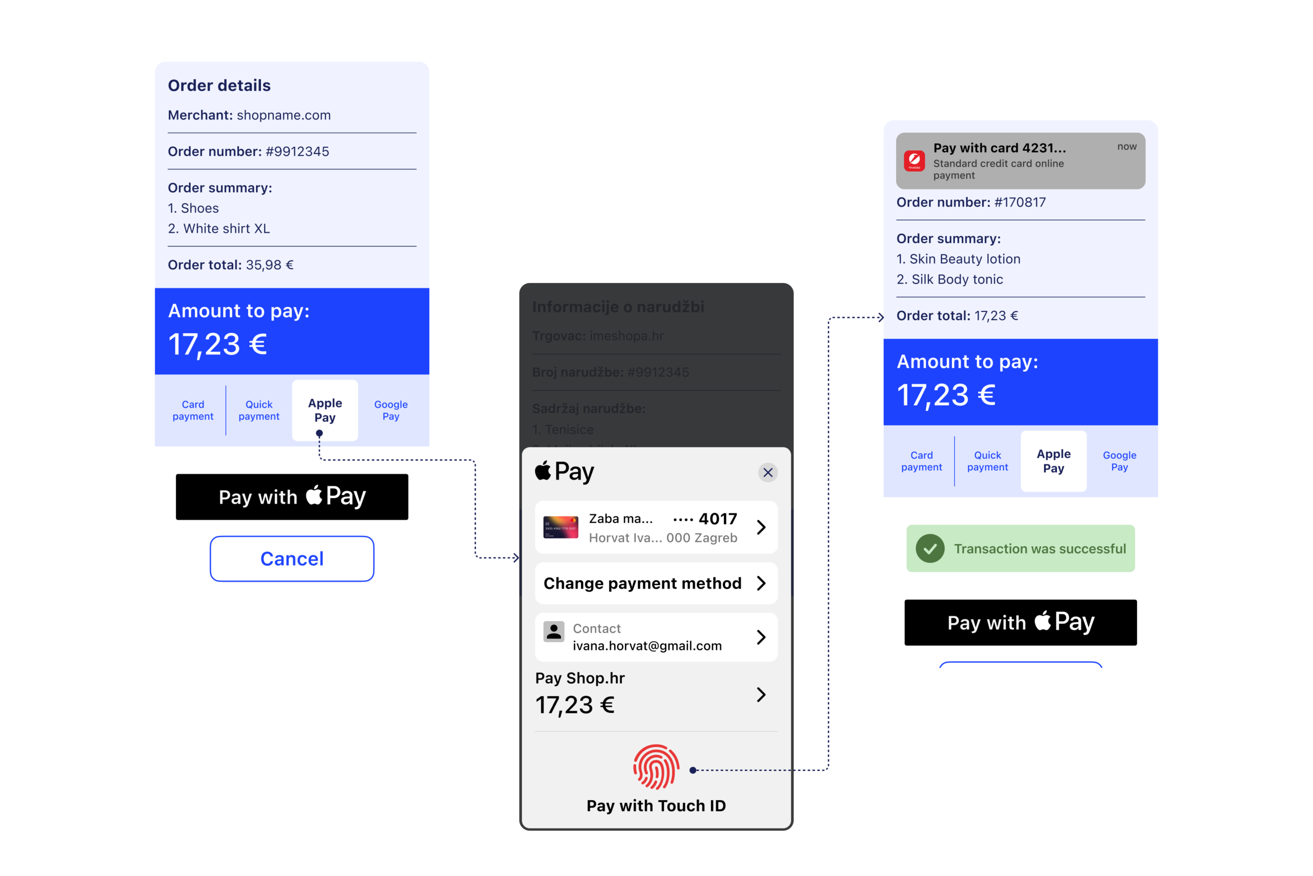 Dostupnost Apple Pay načina plaćanja za internet prodavnicu može zavisiti od banke sa kojom imaš ugovoren prihvat, a za kupca od vrste uređaja.